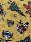 STEAMPUNK CHRISTMAS TOSS OF SANTA, SLEIGH, SNOWMAN, TREE GINGERBREAD BOY & CLOCK ON YELLOW BACKGROUND